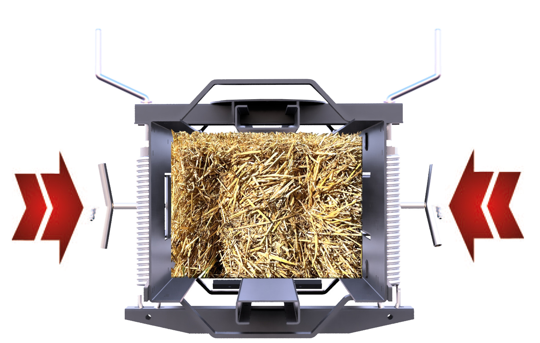 Esto es posible gracias al aire enviado desde el compresor al actuador neumático, que comprimirá y expandirá automáticamente los paneles superior e inferior de la cámara a medida que el producto pasa a través de ella, asegurando que las balas sean siempre de la misma densidad.