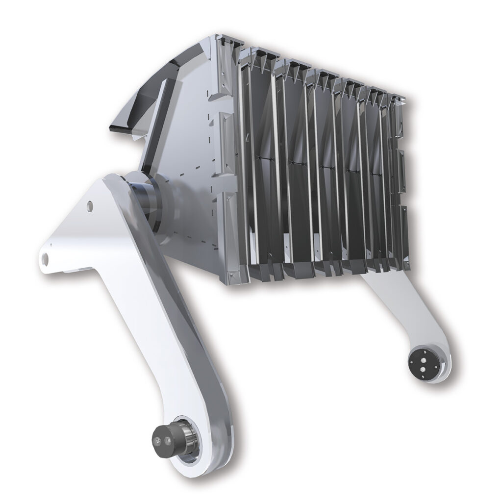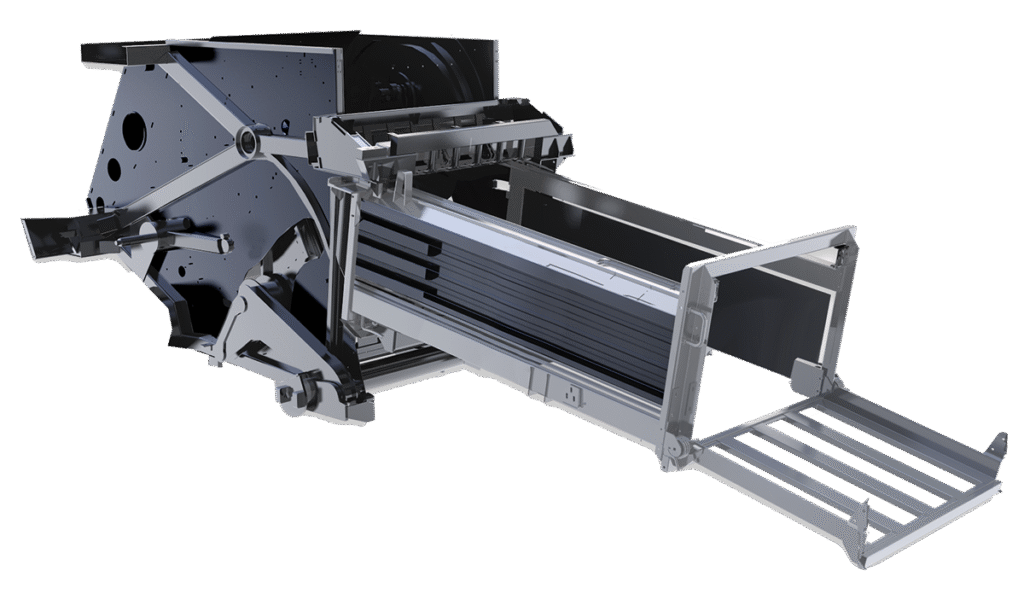 Rediseñada según el revolucionario movimiento semicircular del pistón de alta presión, está construida con aceros especiales Weldox y Hardox sin las tradicionales correderas para el avance del pistón en la cámara de compresión.