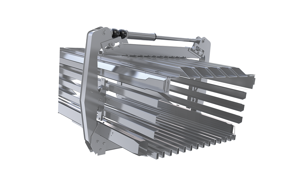 El único sistema de alimentación desde la parte superior del mercado, constituido por dos rotores sincronizados que transfieren el producto en un canal extra largo de 3,3 m de longitud. Un recorrido especial que permite que el polvo e incluso las pequeñas piedras caigan a lo largo del canal, garantizando un producto intacto y más limpio.