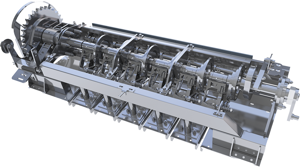 Este es el único mecanismo del mercado capaz de asegurar que en cada carrera del pistón se coloque en la cámara una capa de producto uniforme y sustancial, sin carreras perdidas del pistón.